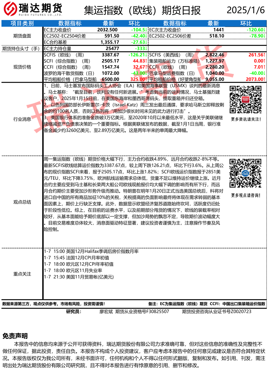 2025-12-04瑞达期货集运指数(欧线)期货市场每日全景分析报告202451204