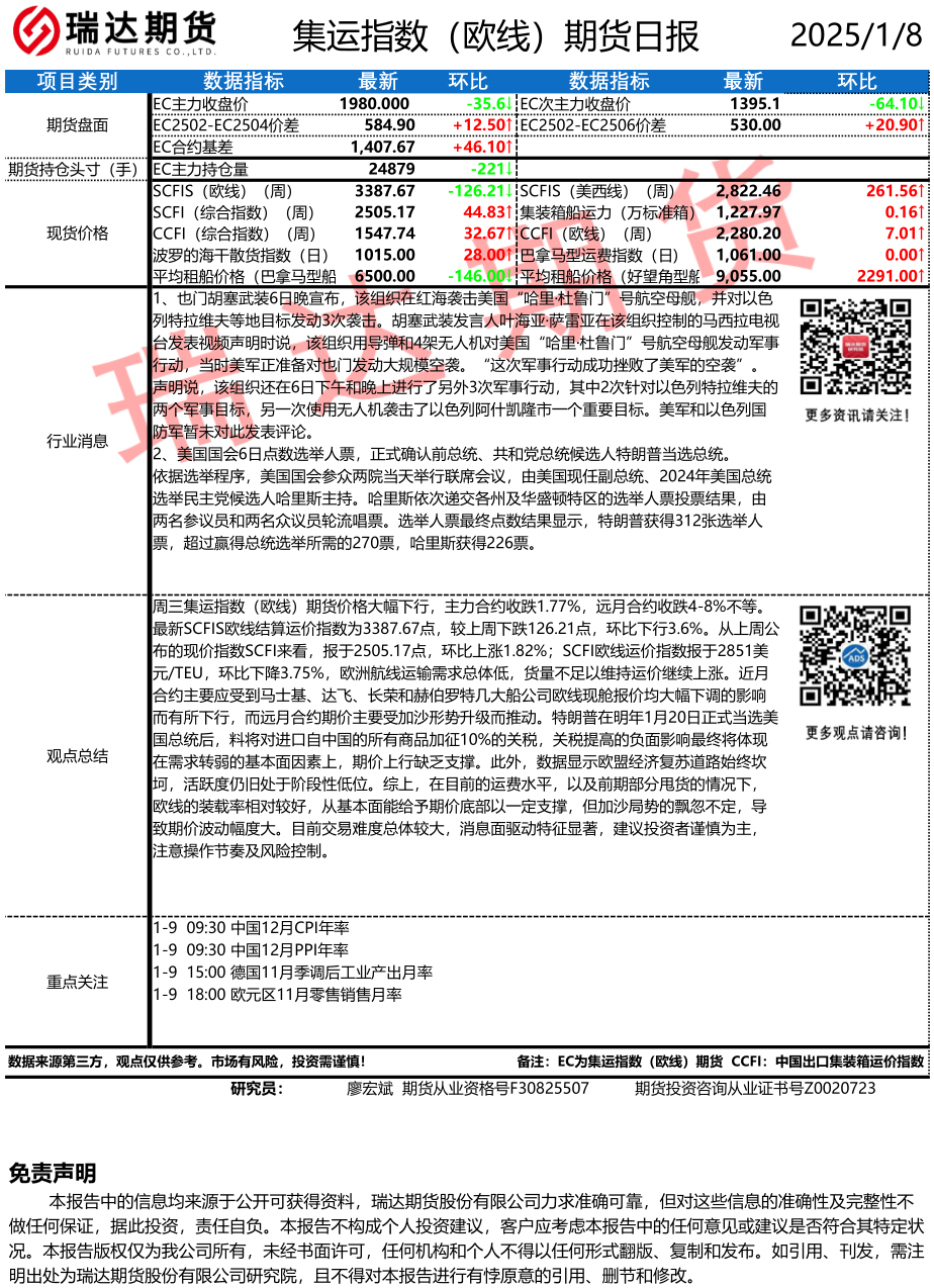 2025-12-04瑞达期货集运指数(欧线)期货市场每日全景分析报告202451204