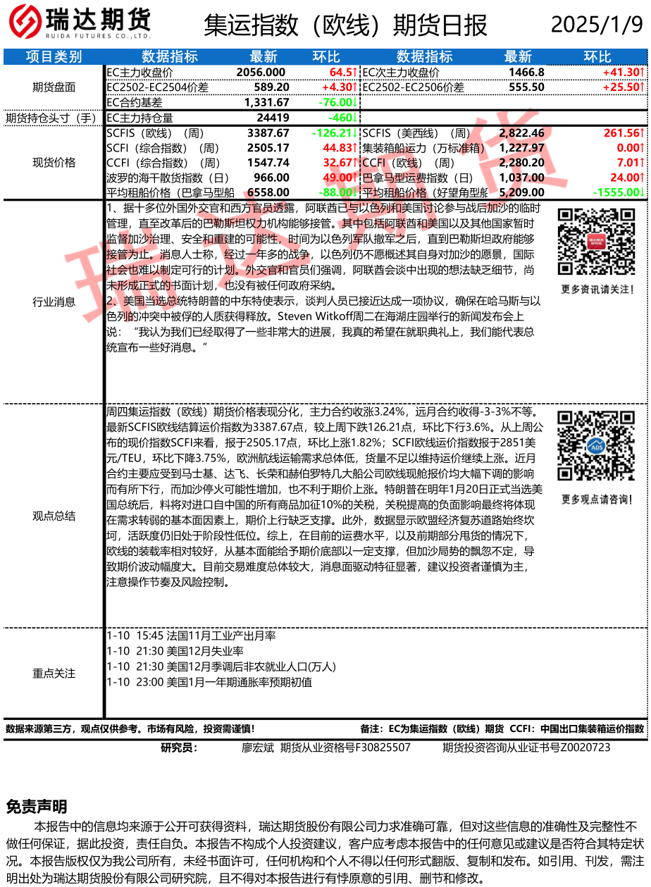 2025-12-04瑞达期货集运指数(欧线)期货市场每日全景分析报告202451204