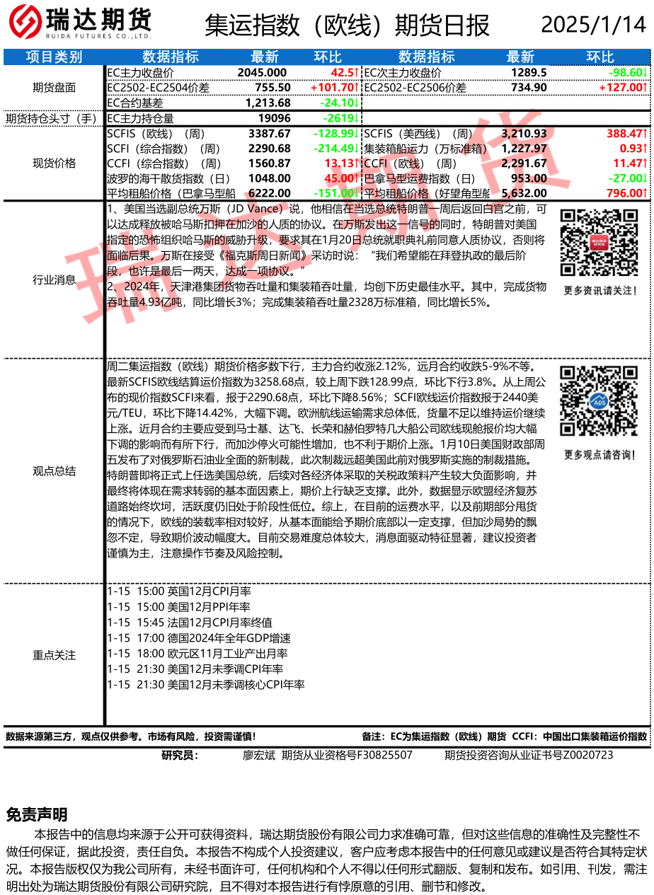 2025-12-04瑞达期货集运指数(欧线)期货市场每日全景分析报告202451204