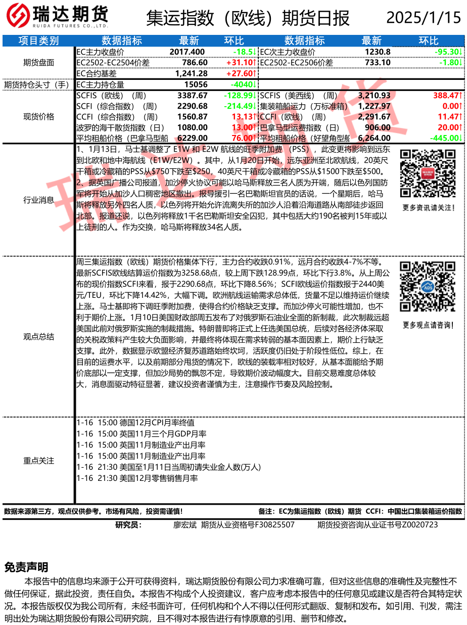 2025-12-04瑞达期货集运指数(欧线)期货市场每日全景分析报告202451204