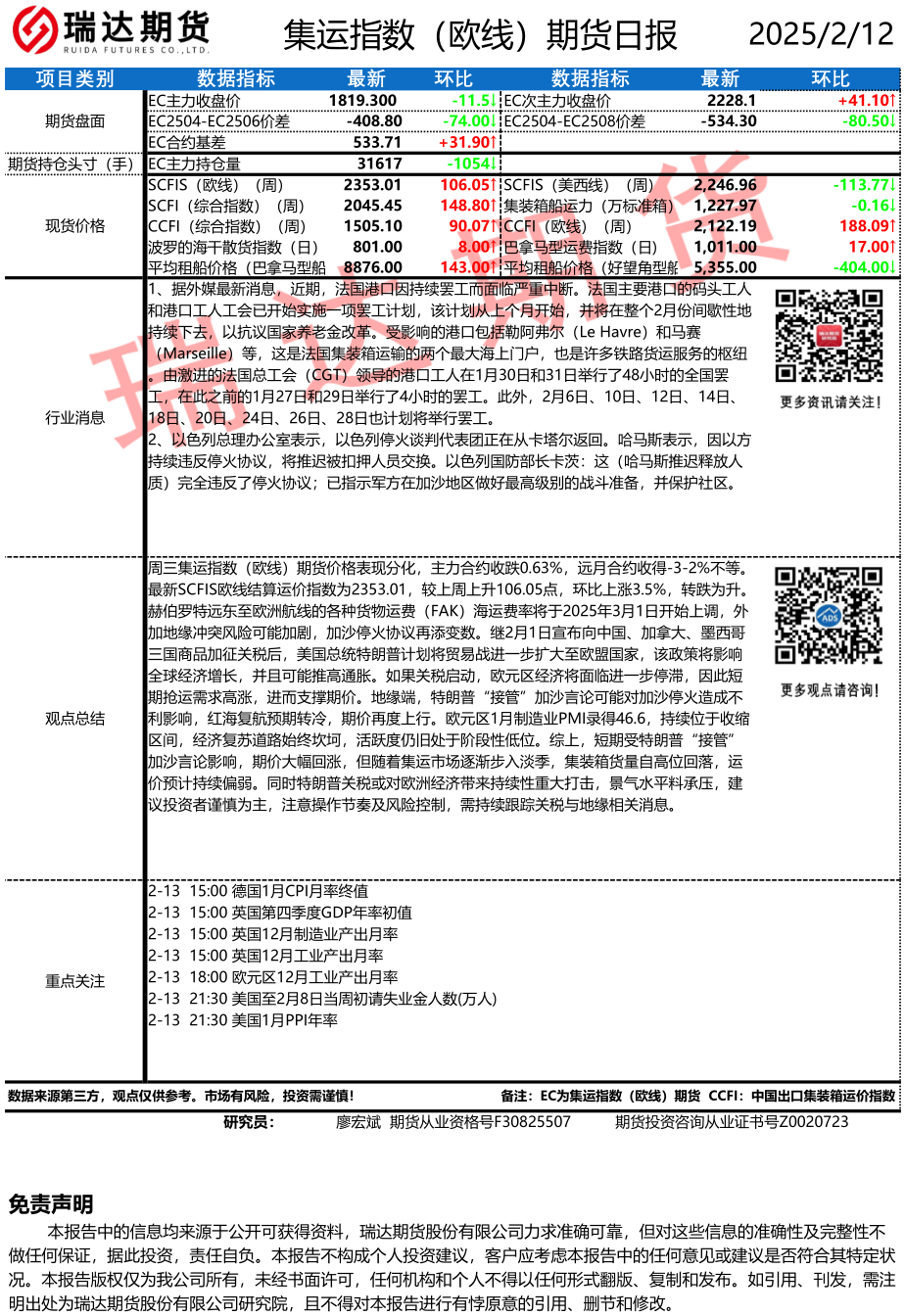 2025-12-04瑞达期货集运指数(欧线)期货市场每日全景分析报告202451204