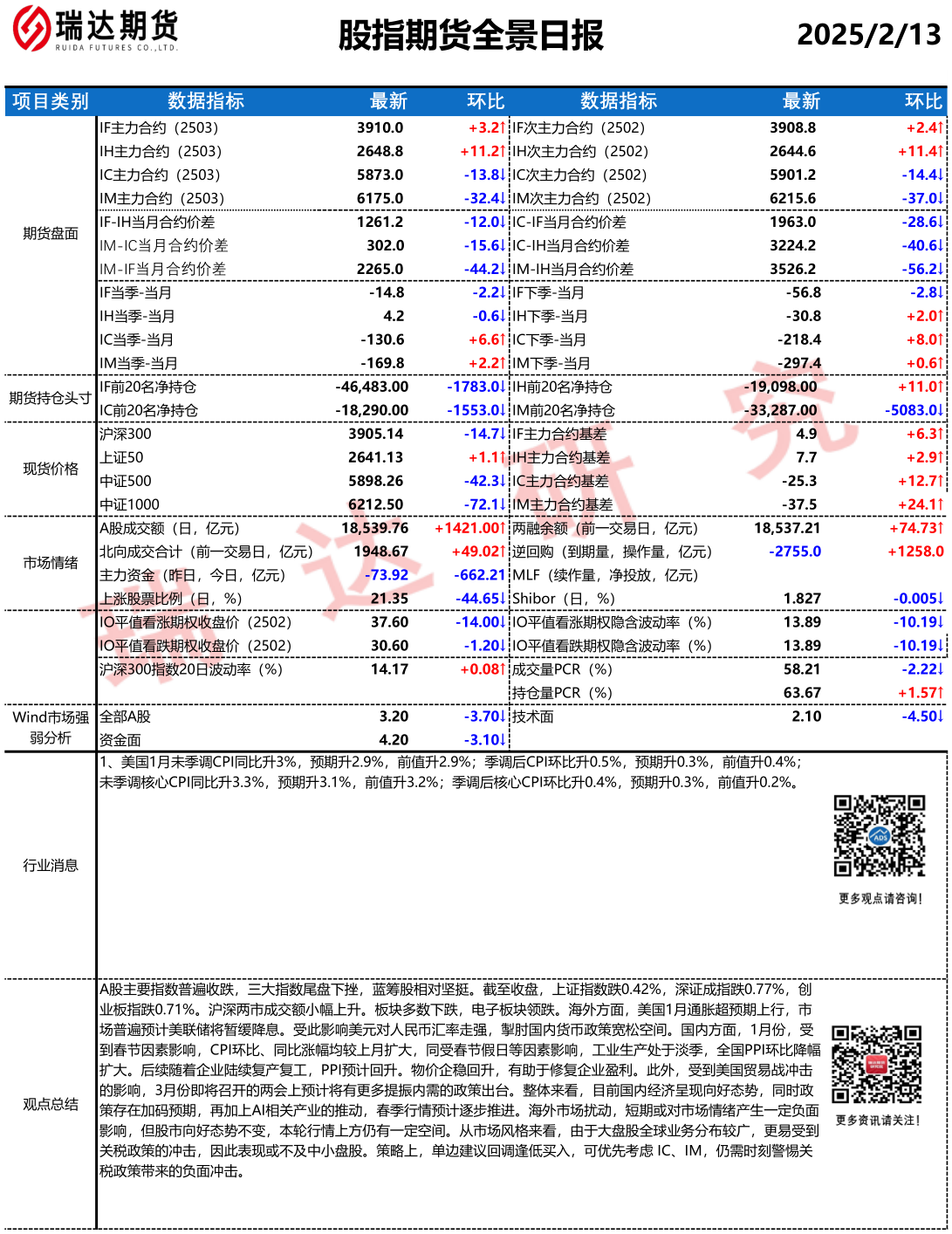 2025-12-17瑞达期货股指期货市场每日全景分析报告20251217