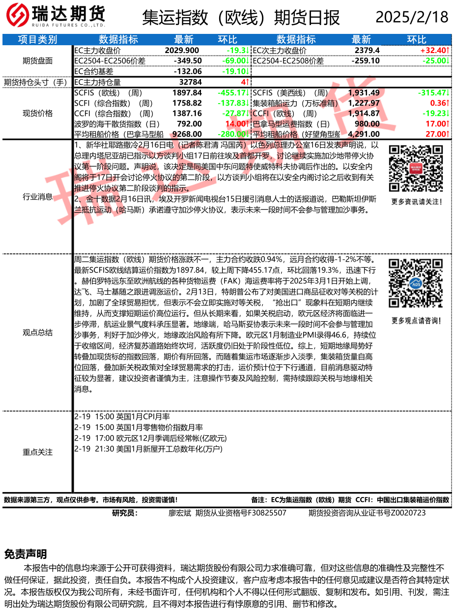 2025-12-04瑞达期货集运指数(欧线)期货市场每日全景分析报告202451204