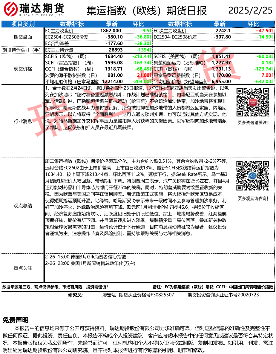 2025-12-04瑞达期货集运指数(欧线)期货市场每日全景分析报告202451204