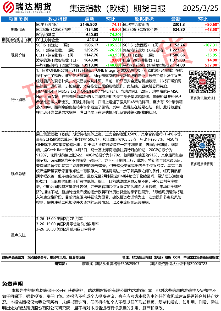 2025-12-04瑞达期货集运指数(欧线)期货市场每日全景分析报告202451204