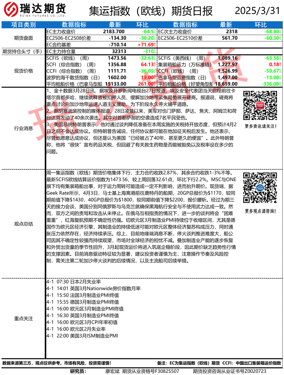 2025-12-04瑞达期货集运指数(欧线)期货市场每日全景分析报告202451204