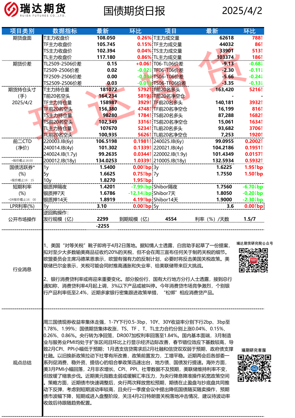 2025-12-04瑞达期货国债期货市场每日全景分析报告20251204