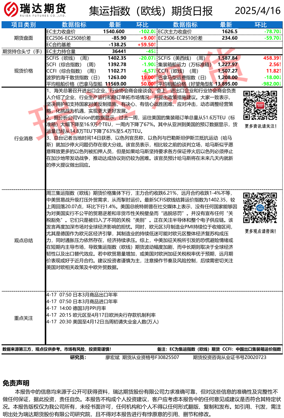 2025-12-04瑞达期货集运指数(欧线)期货市场每日全景分析报告202451204