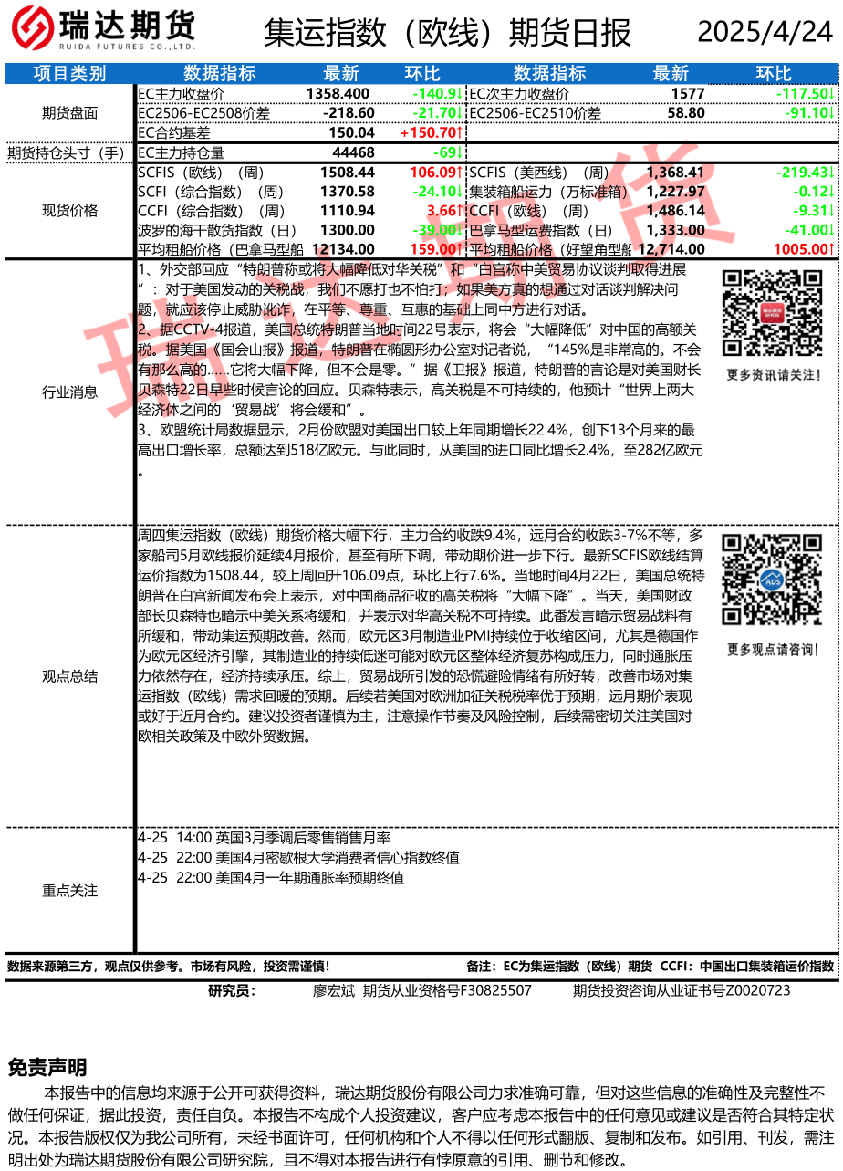 2025-12-04瑞达期货集运指数(欧线)期货市场每日全景分析报告202451204