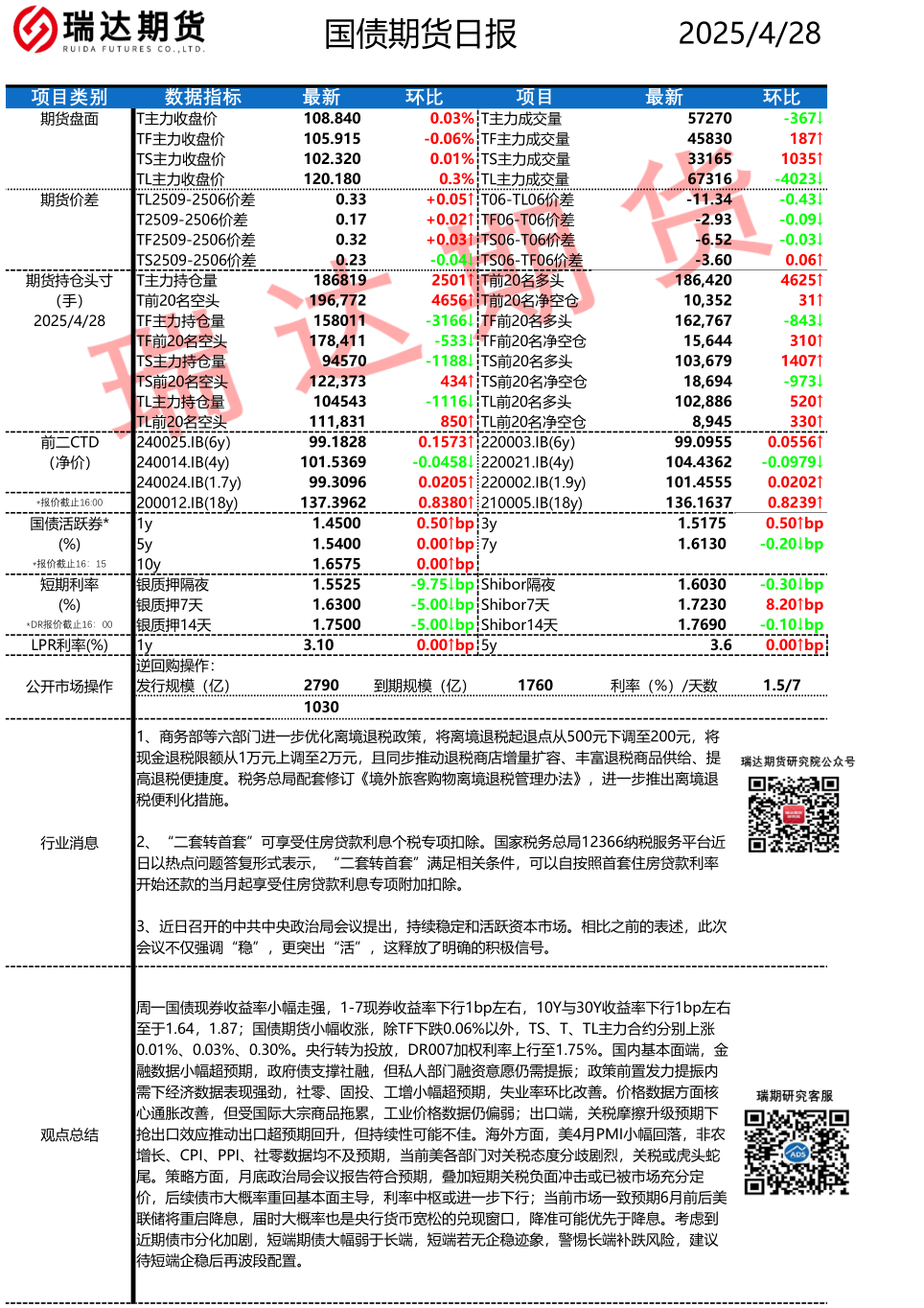 2025-12-04瑞达期货国债期货市场每日全景分析报告20251204