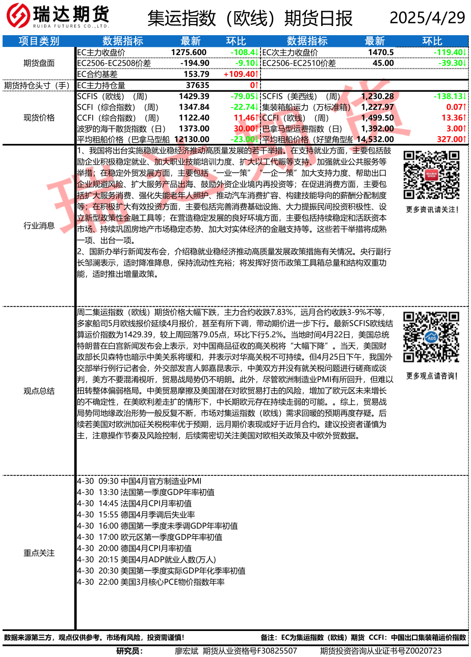 2025-12-04瑞达期货集运指数(欧线)期货市场每日全景分析报告202451204
