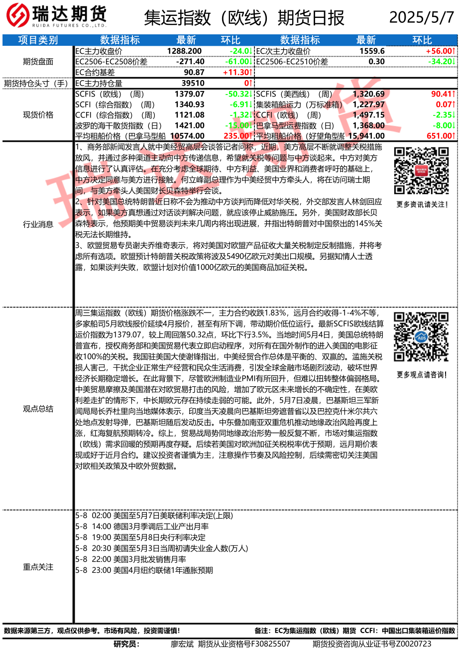 2025-12-04瑞达期货集运指数(欧线)期货市场每日全景分析报告202451204