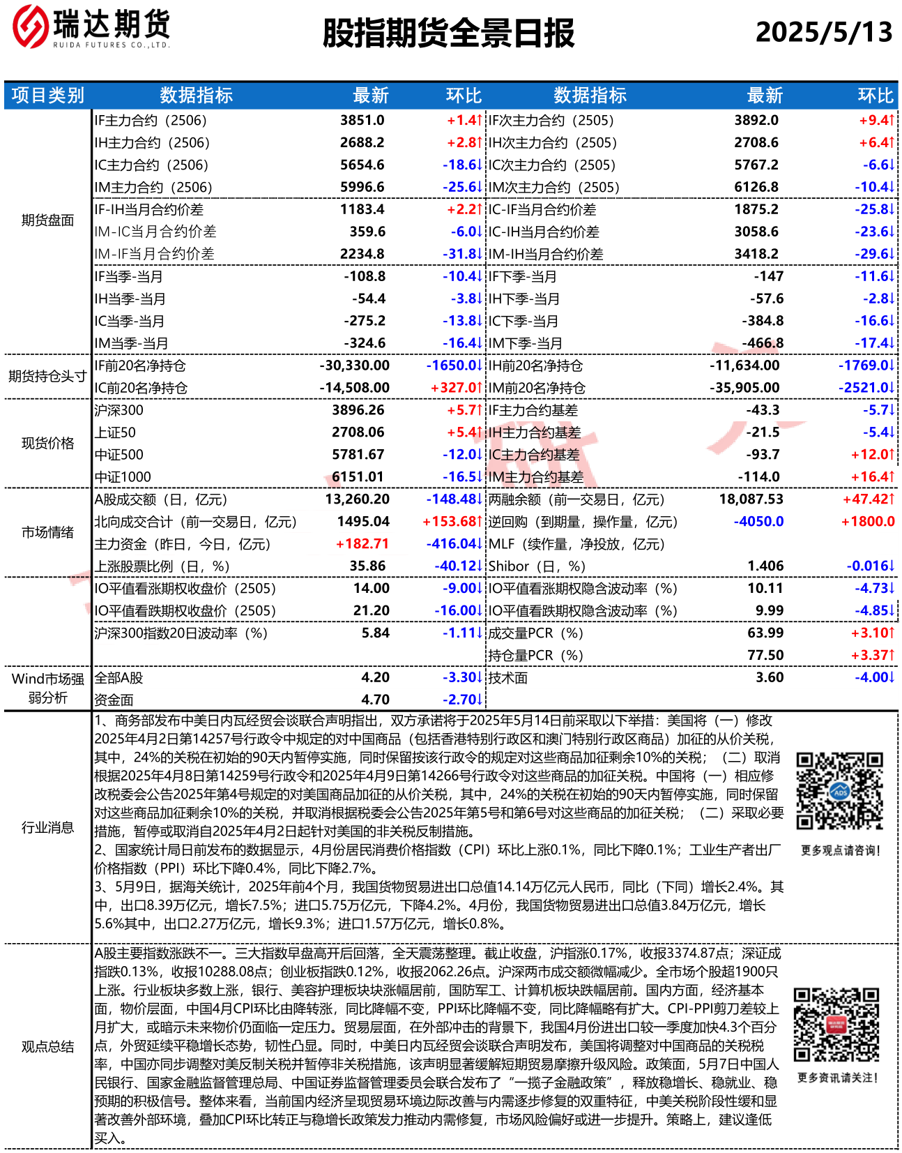 2025-12-17瑞达期货股指期货市场每日全景分析报告20251217