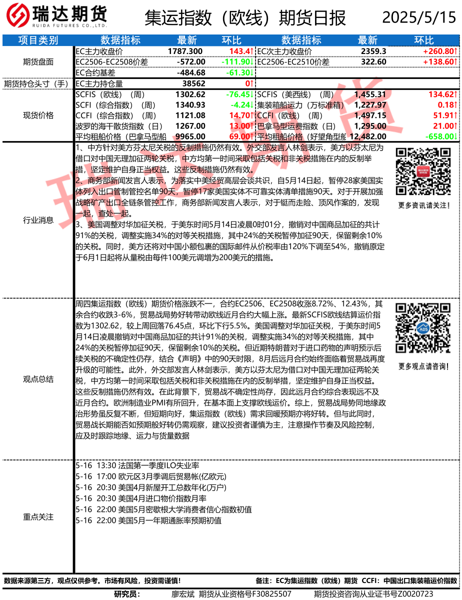 2025-12-18瑞达期货集运指数(欧线)期货市场每日全景分析报告202451218