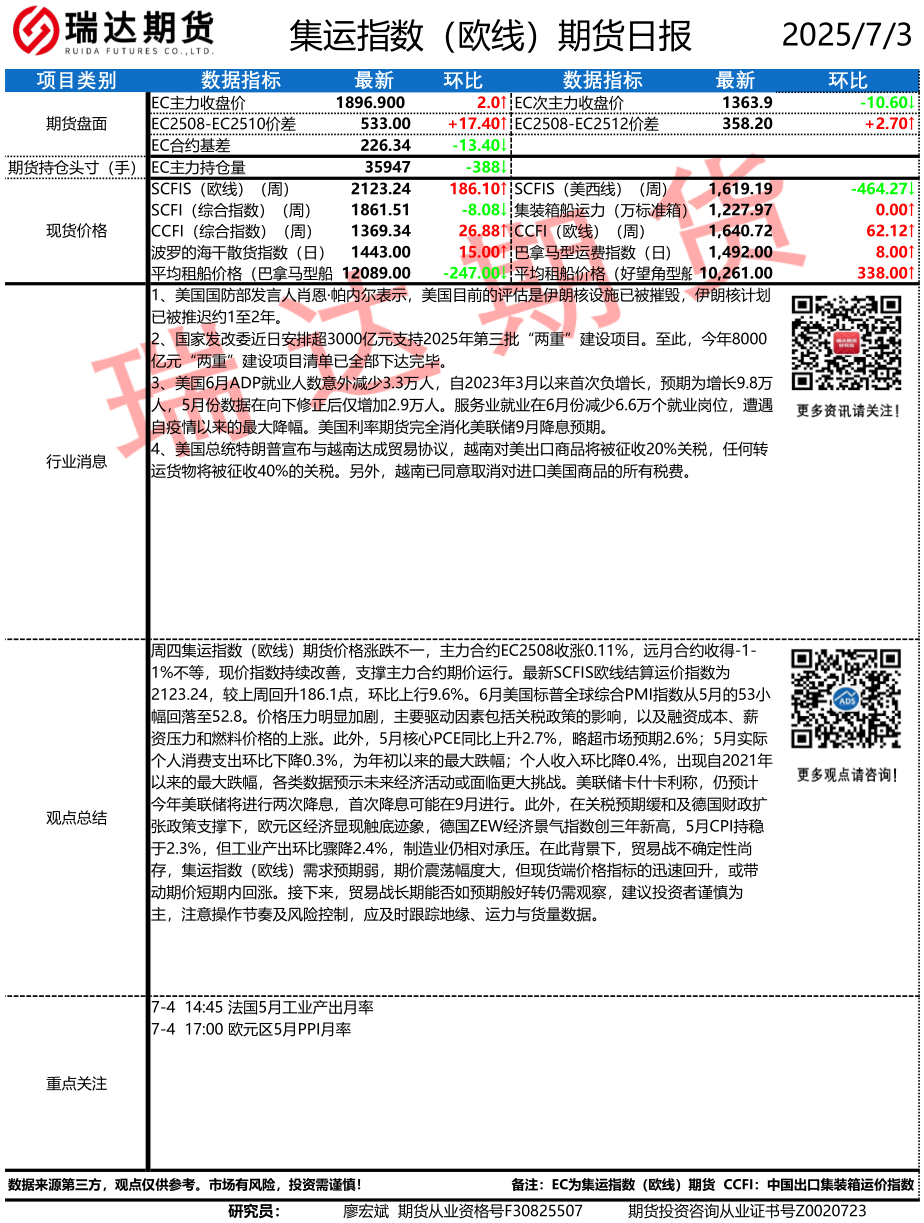 2025-12-04瑞达期货集运指数(欧线)期货市场每日全景分析报告202451204
