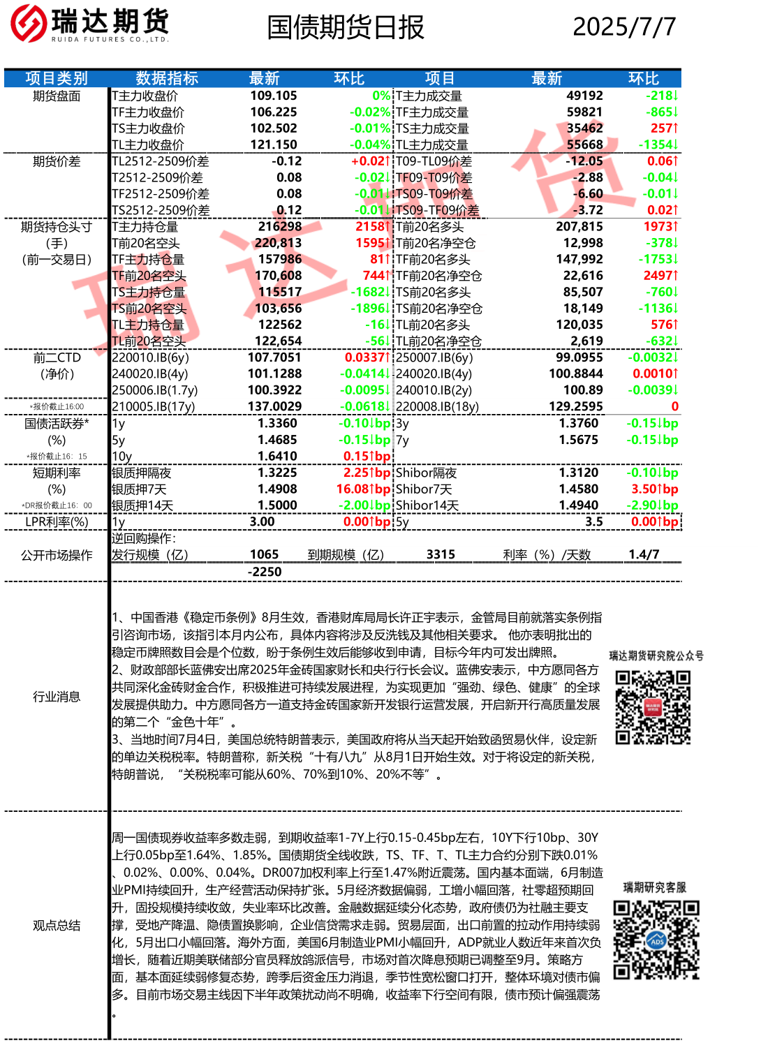 2025-12-04瑞达期货国债期货市场每日全景分析报告20251204