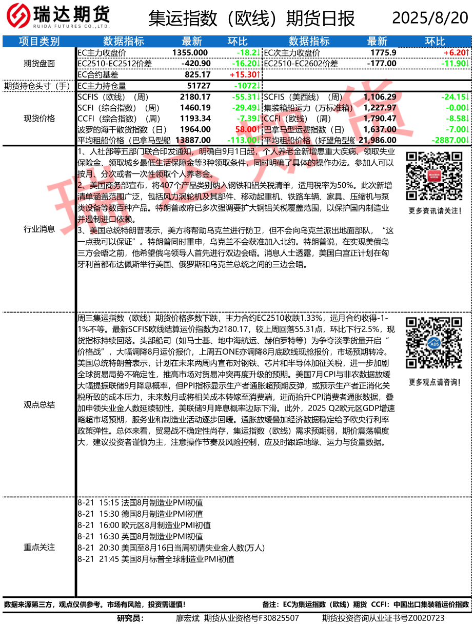 2025-12-04瑞达期货集运指数(欧线)期货市场每日全景分析报告202451204