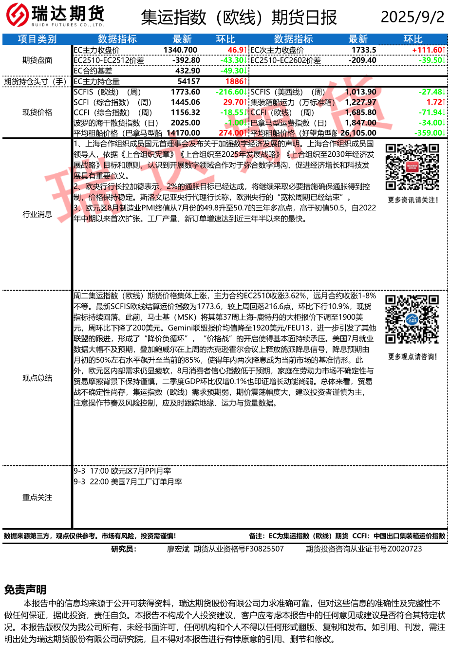 2025-12-04瑞达期货集运指数(欧线)期货市场每日全景分析报告202451204