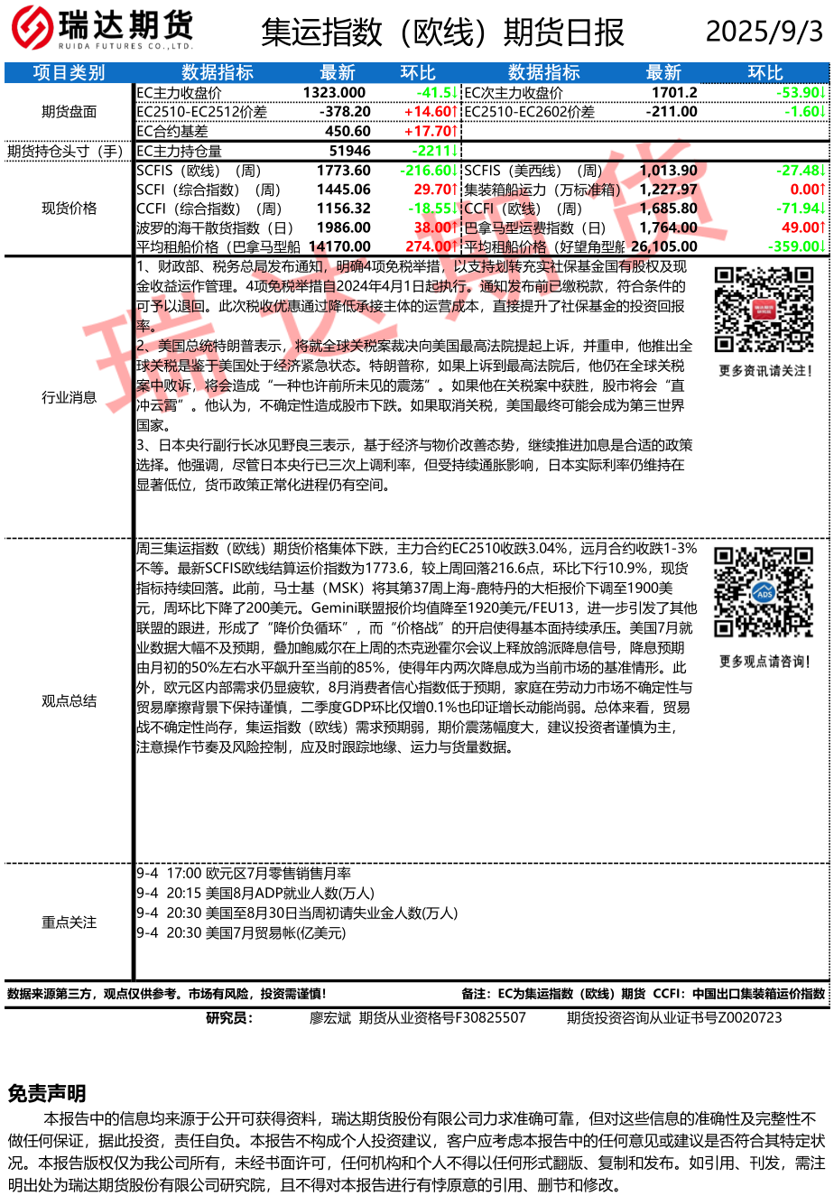 2025-12-04瑞达期货集运指数(欧线)期货市场每日全景分析报告202451204
