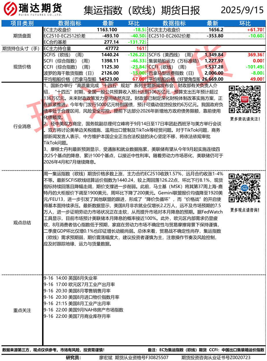2025-12-04瑞达期货集运指数(欧线)期货市场每日全景分析报告202451204