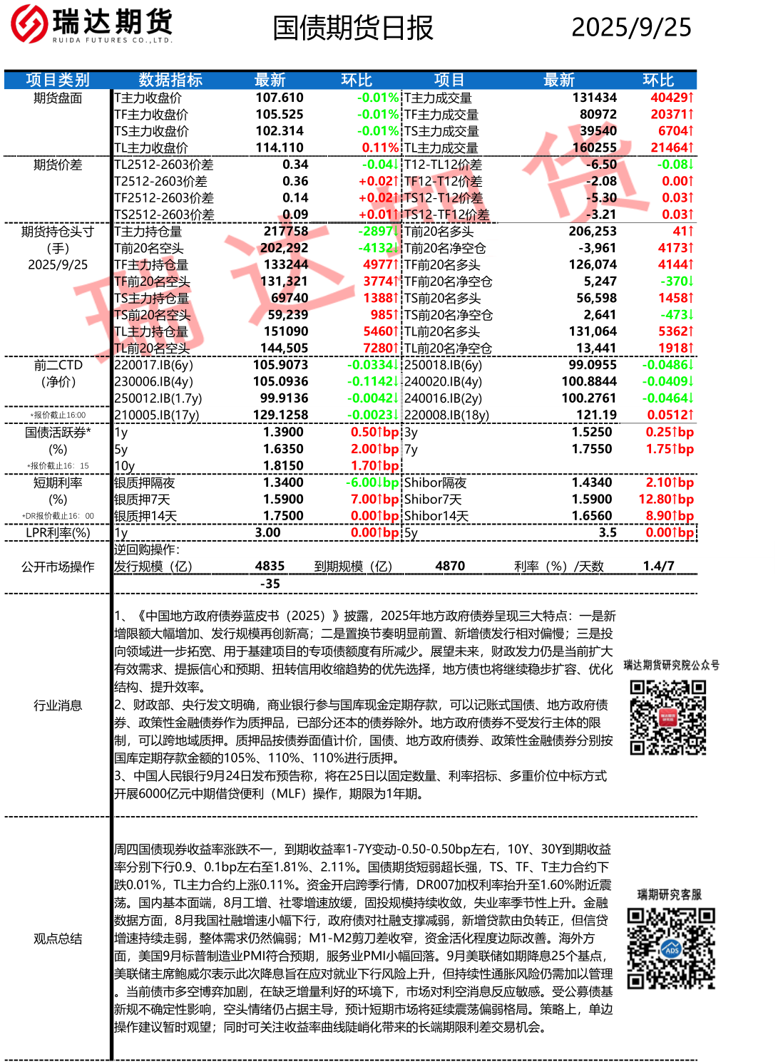 2025-12-04瑞达期货国债期货市场每日全景分析报告20251204