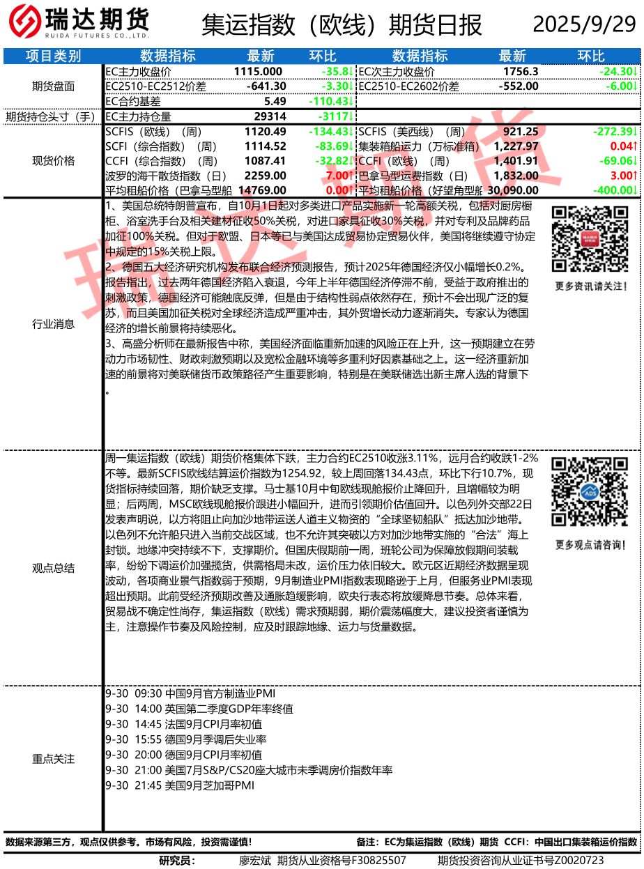 2025-12-04瑞达期货集运指数(欧线)期货市场每日全景分析报告202451204
