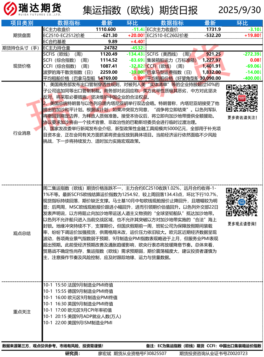 2025-12-04瑞达期货集运指数(欧线)期货市场每日全景分析报告202451204
