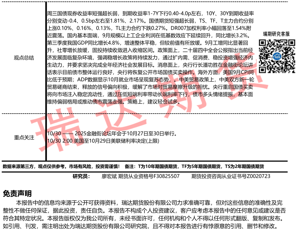 2026-01-29瑞达期货国债期货市场每日全景分析报告20260129