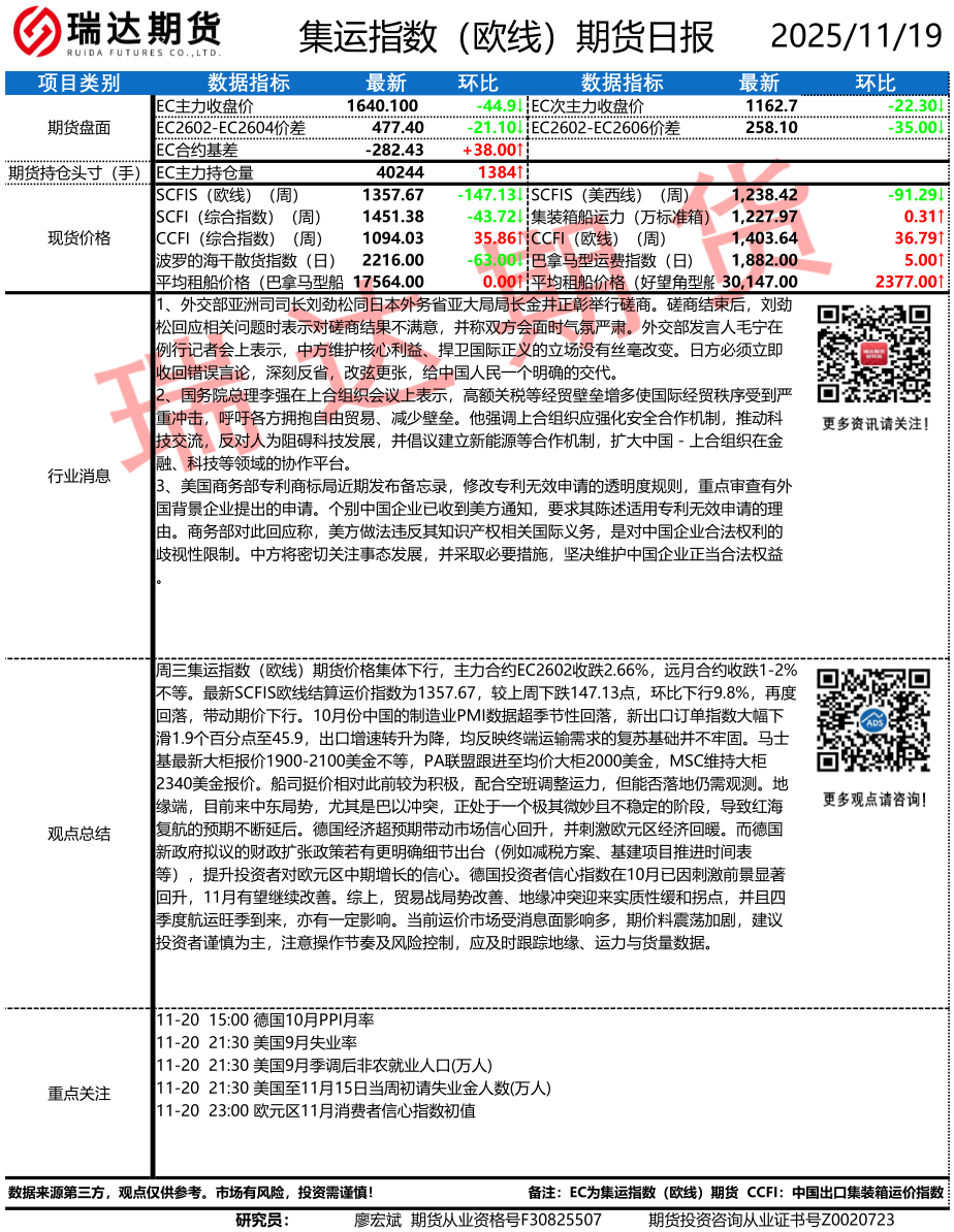 2025-12-11瑞达期货集运指数(欧线)期货市场每日全景分析报告202451211