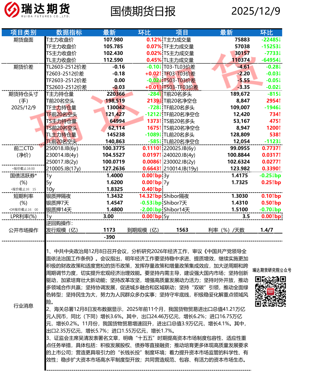 2025-12-11瑞达期货国债期货市场每日全景分析报告20251211