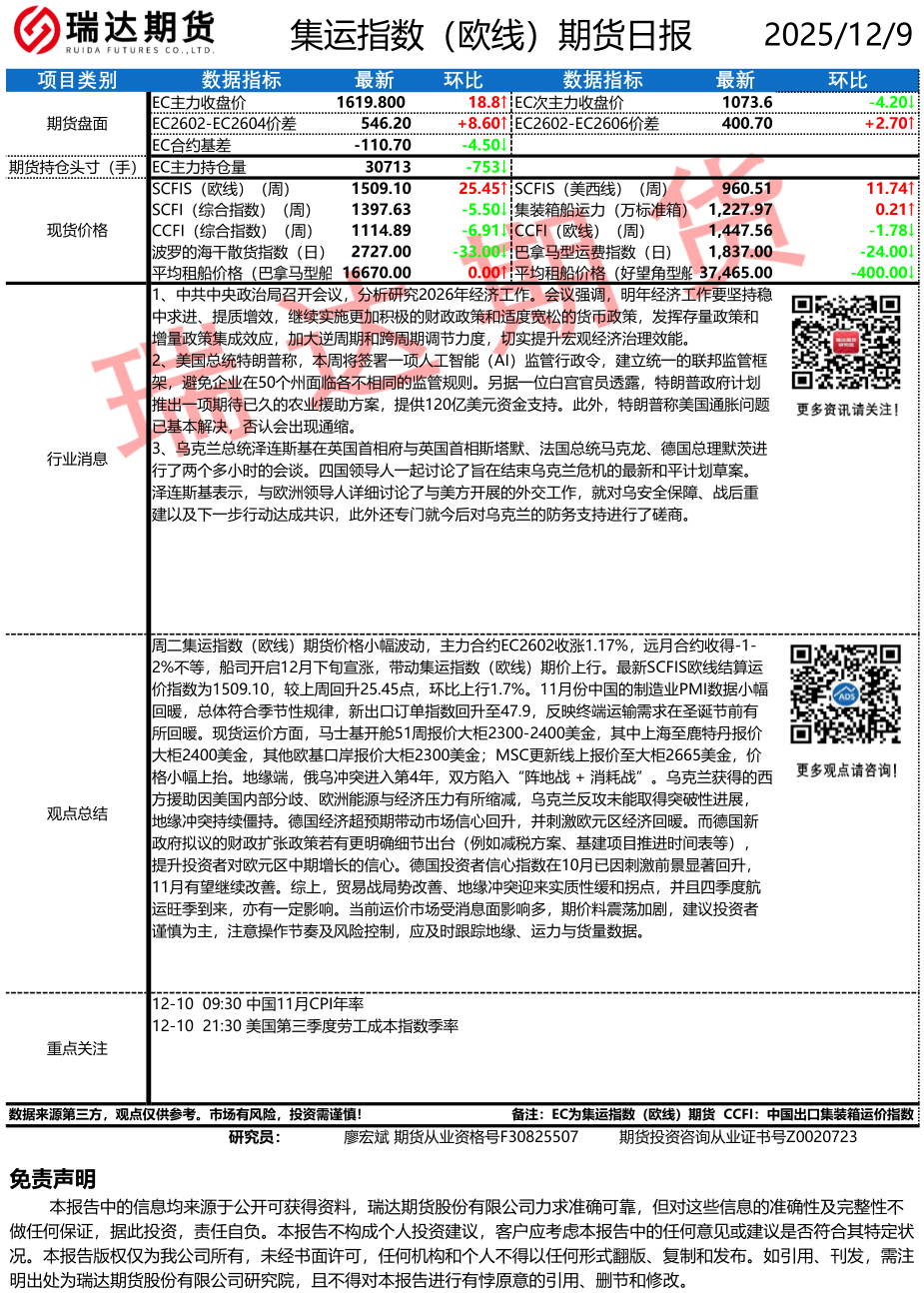 2025-12-11瑞达期货集运指数(欧线)期货市场每日全景分析报告202451211