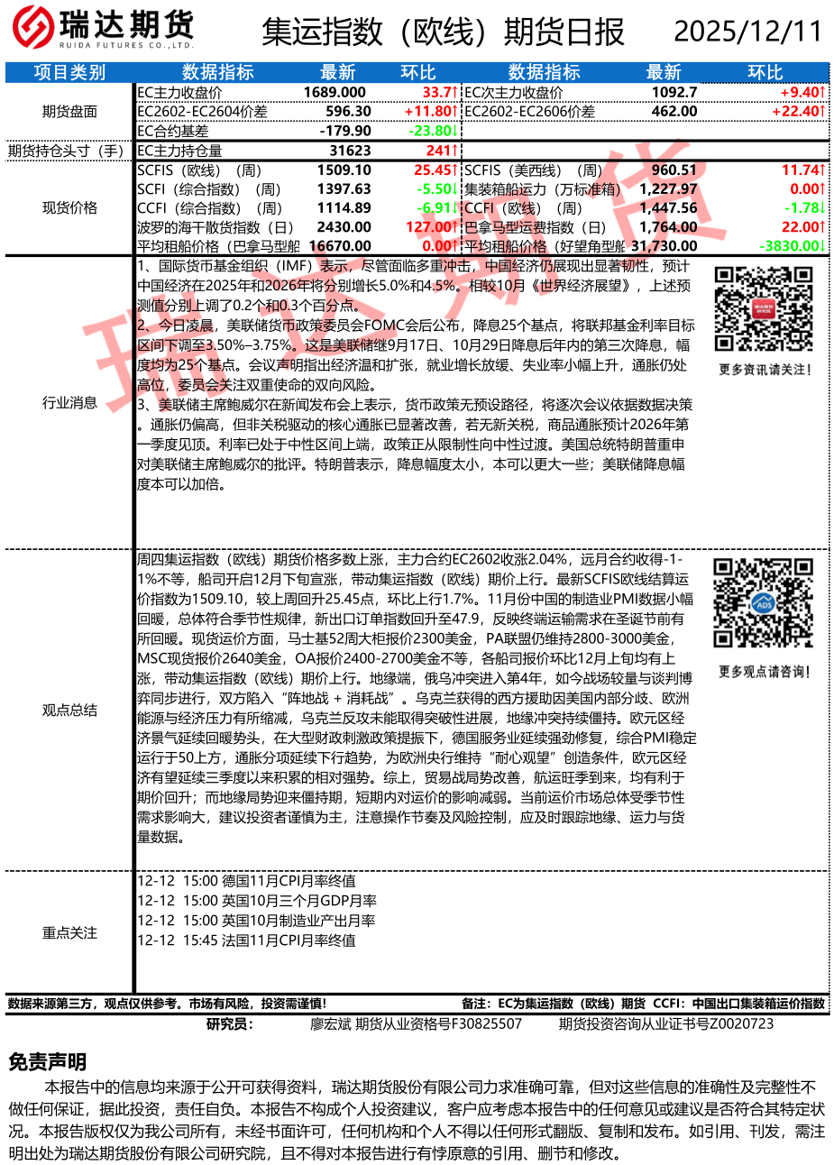 2025-12-11瑞达期货集运指数(欧线)期货市场每日全景分析报告202451211