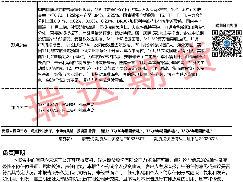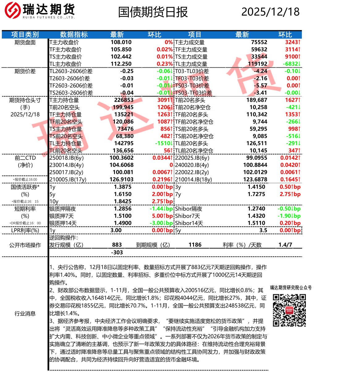 2025-12-18瑞达期货国债期货市场每日全景分析报告20251218