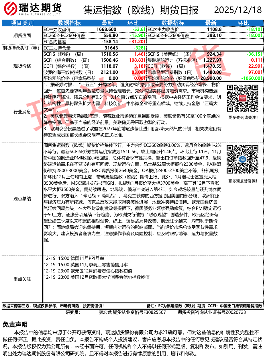 2025-12-18瑞达期货集运指数(欧线)期货市场每日全景分析报告202451218