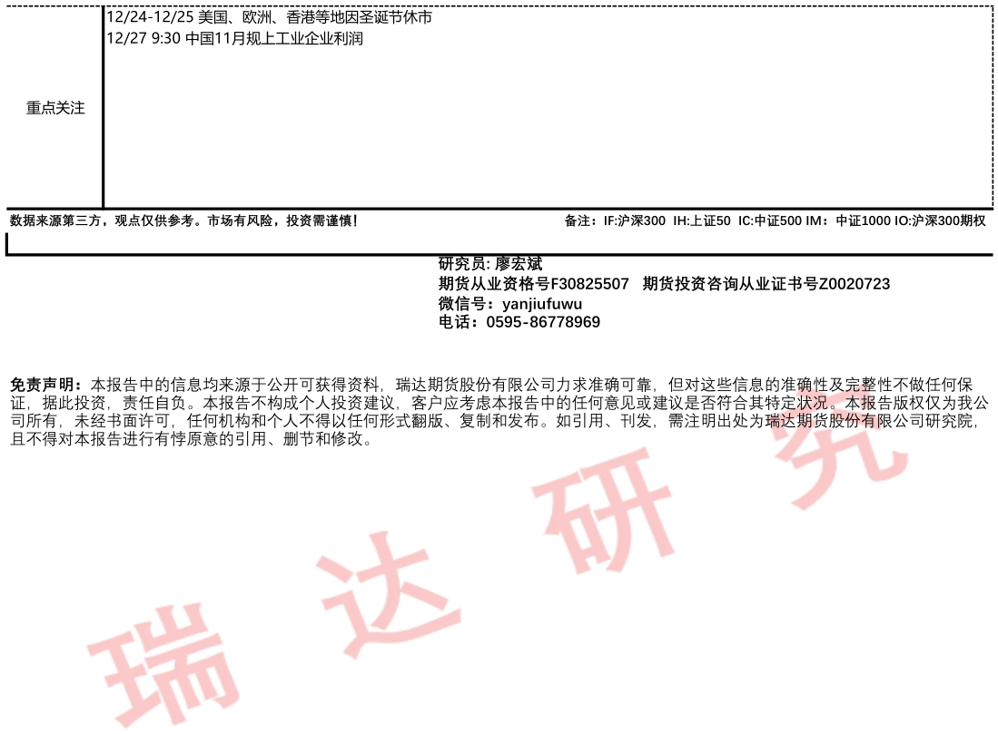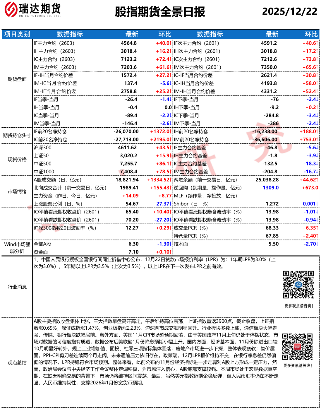2025-12-22瑞达期货股指期货市场每日全景分析报告20251222