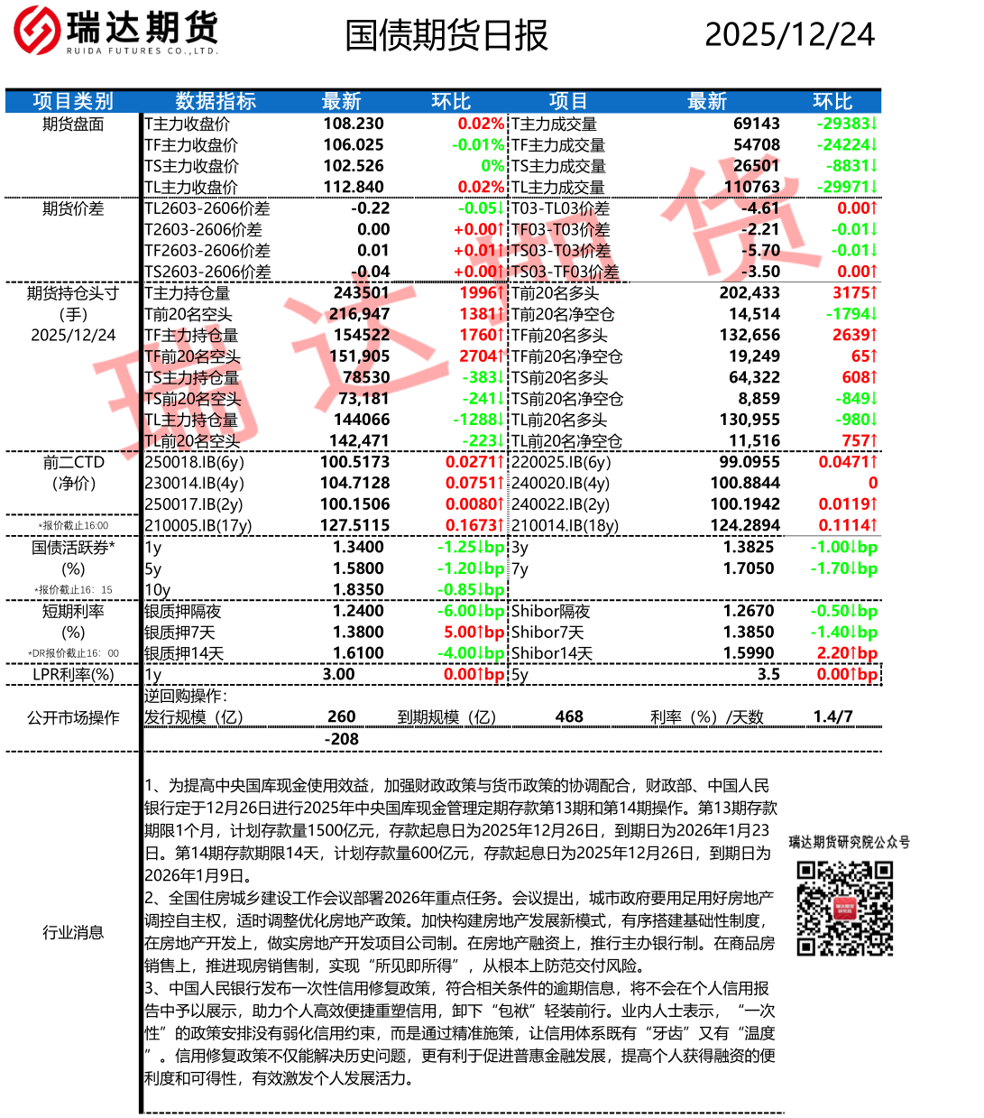 2025-12-29瑞达期货国债期货市场每日全景分析报告20251229