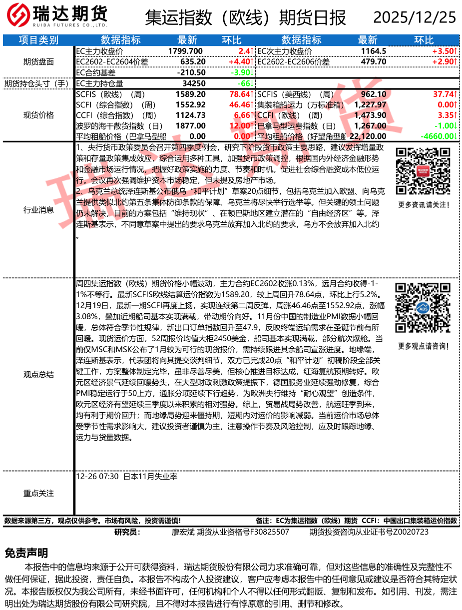 2025-12-25瑞达期货集运指数(欧线)期货市场每日全景分析报告202451225