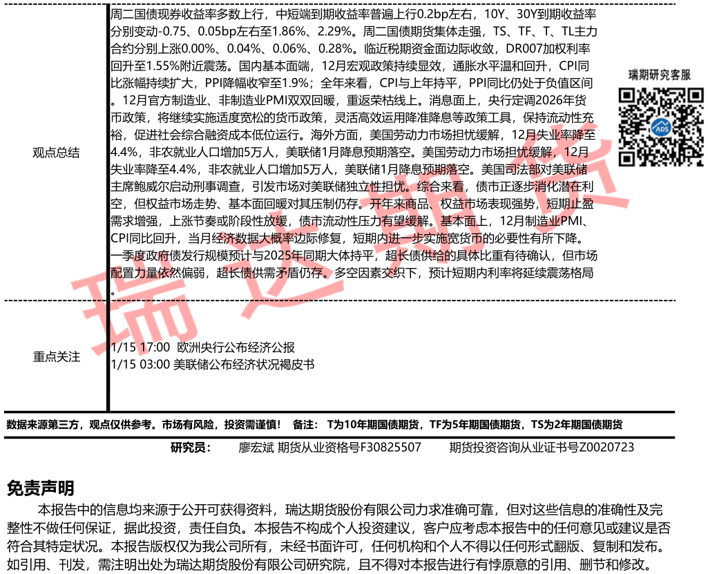 2026-01-13瑞达期货国债期货市场每日全景分析报告20260113