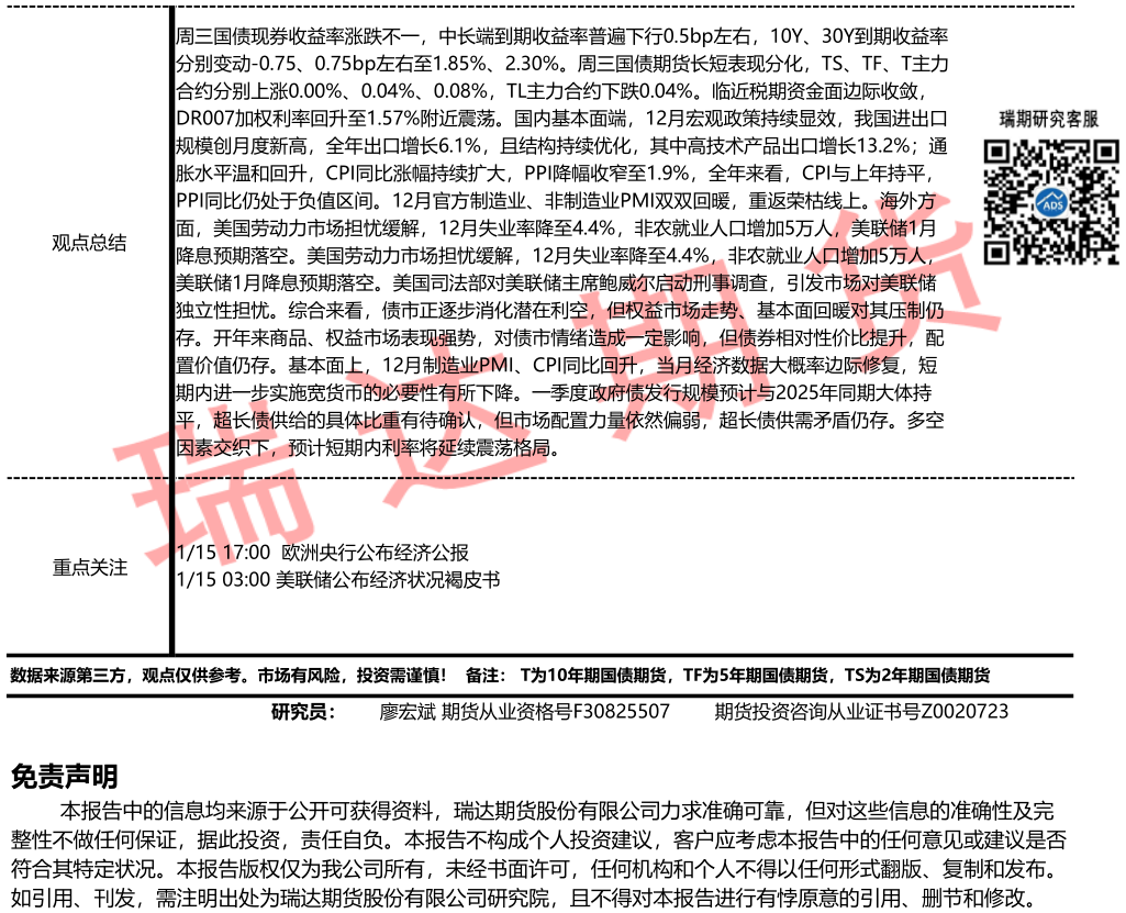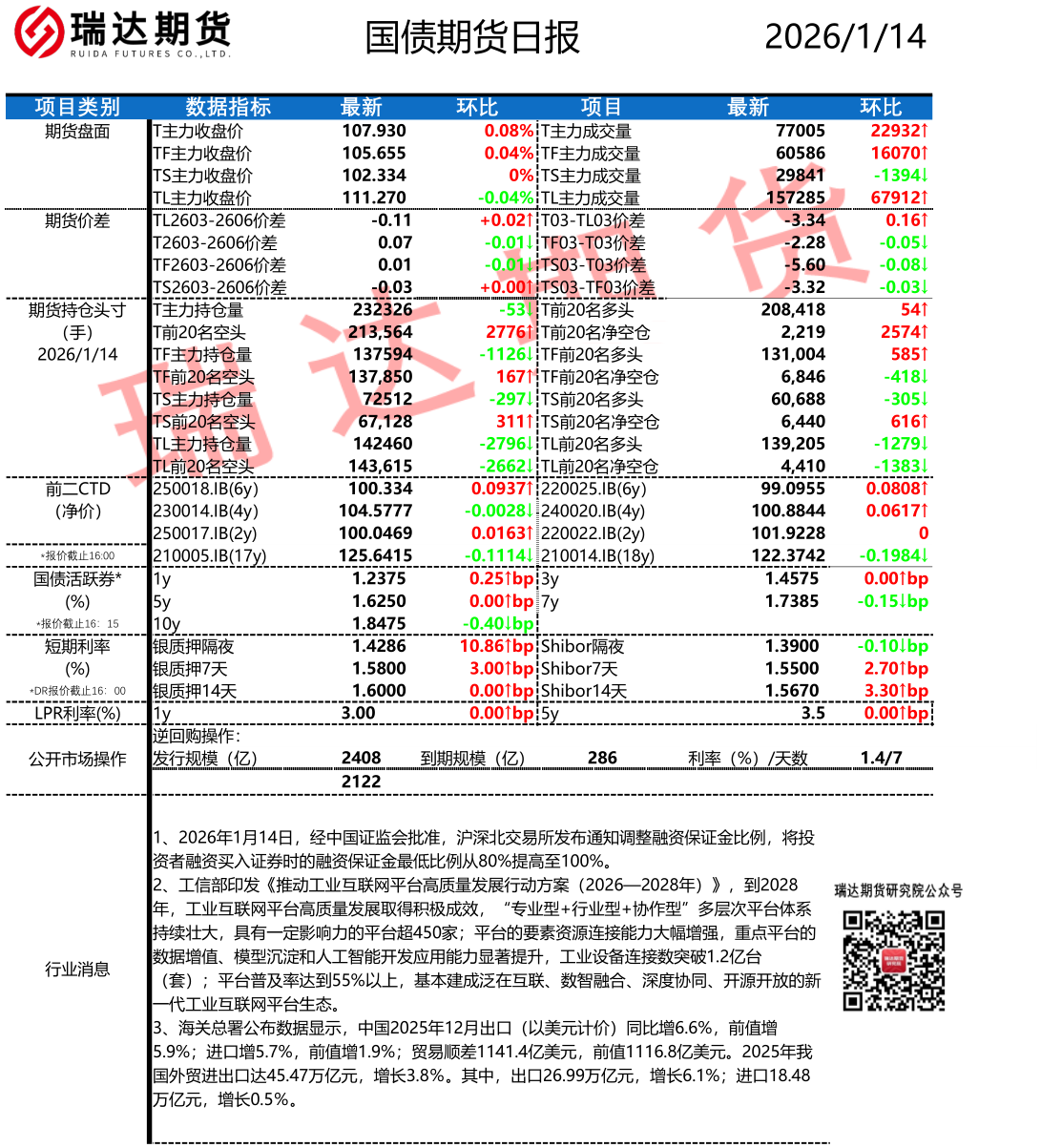 2026-01-14瑞达期货国债期货市场每日全景分析报告20260114