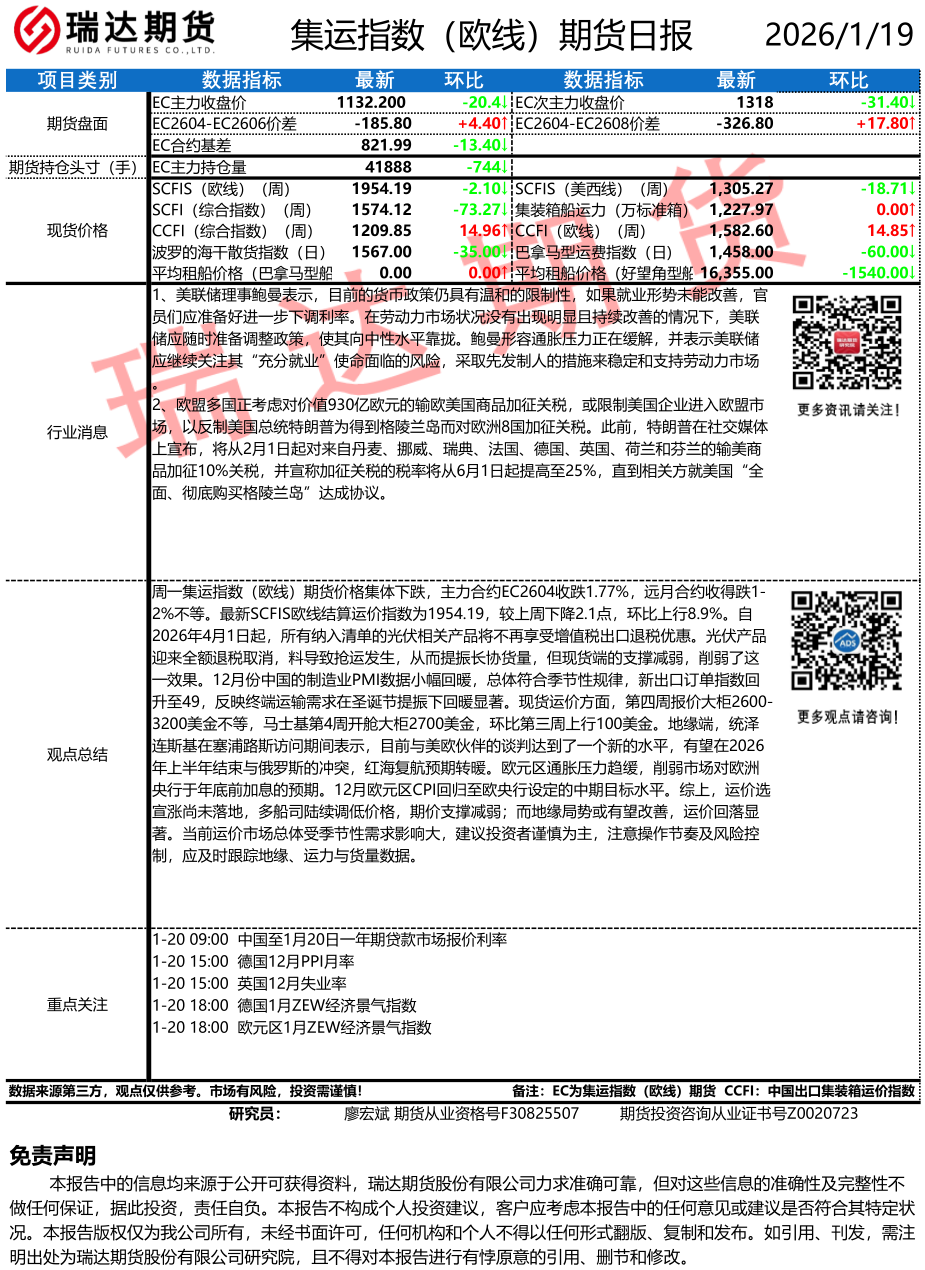 2026-01-22瑞达期货集运指数(欧线)期货市场每日全景分析报告20260122