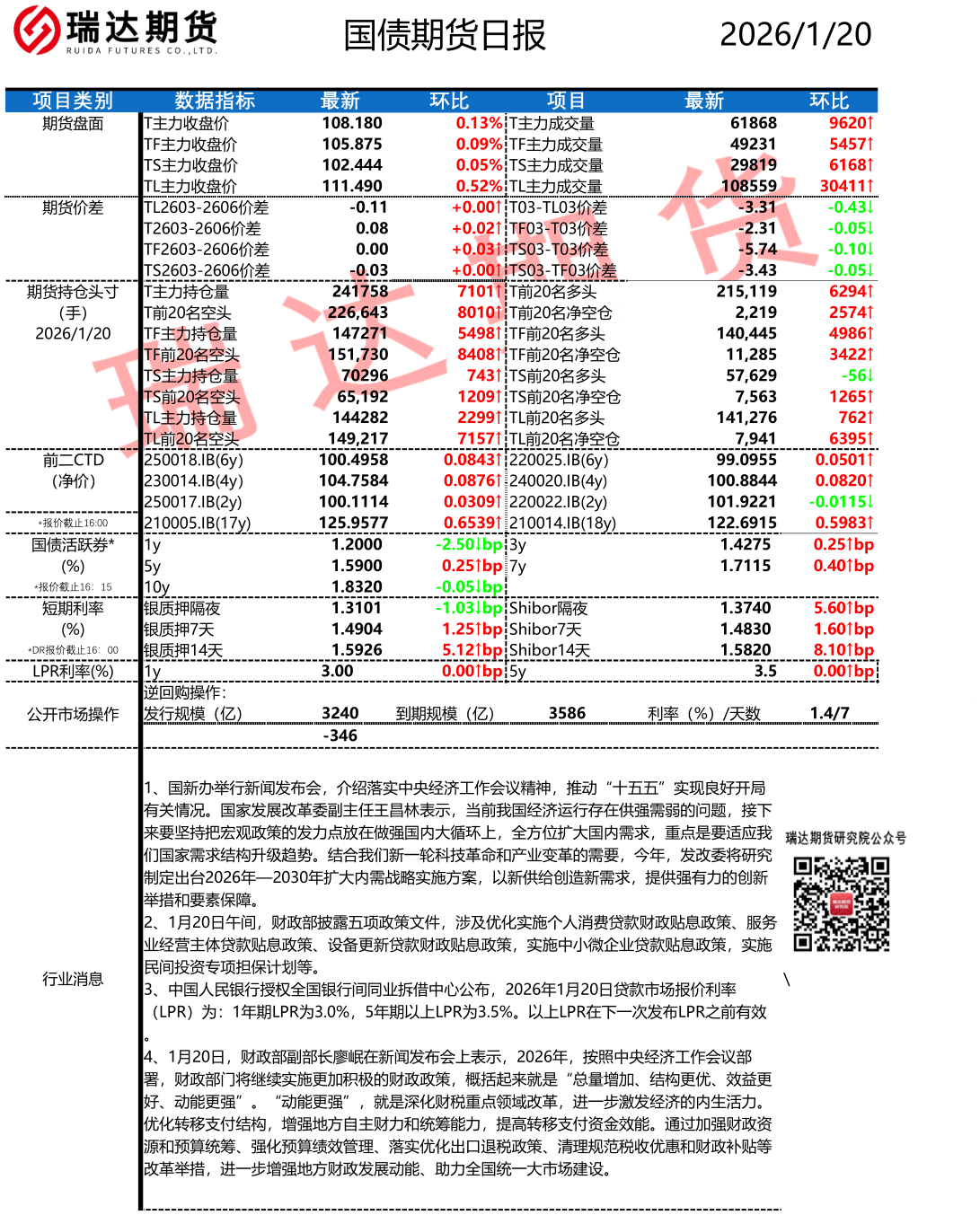 2026-01-22瑞达期货国债期货市场每日全景分析报告20260122