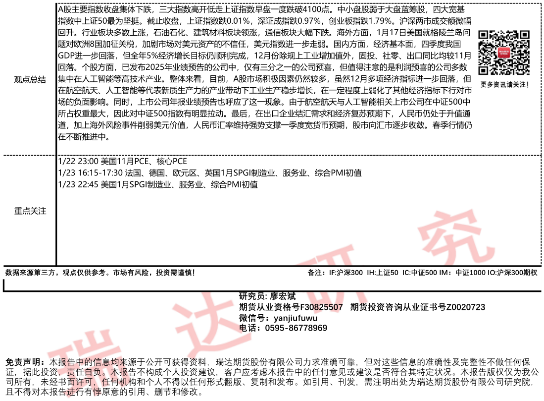 2026-01-22瑞达期货国债期货市场每日全景分析报告20260122