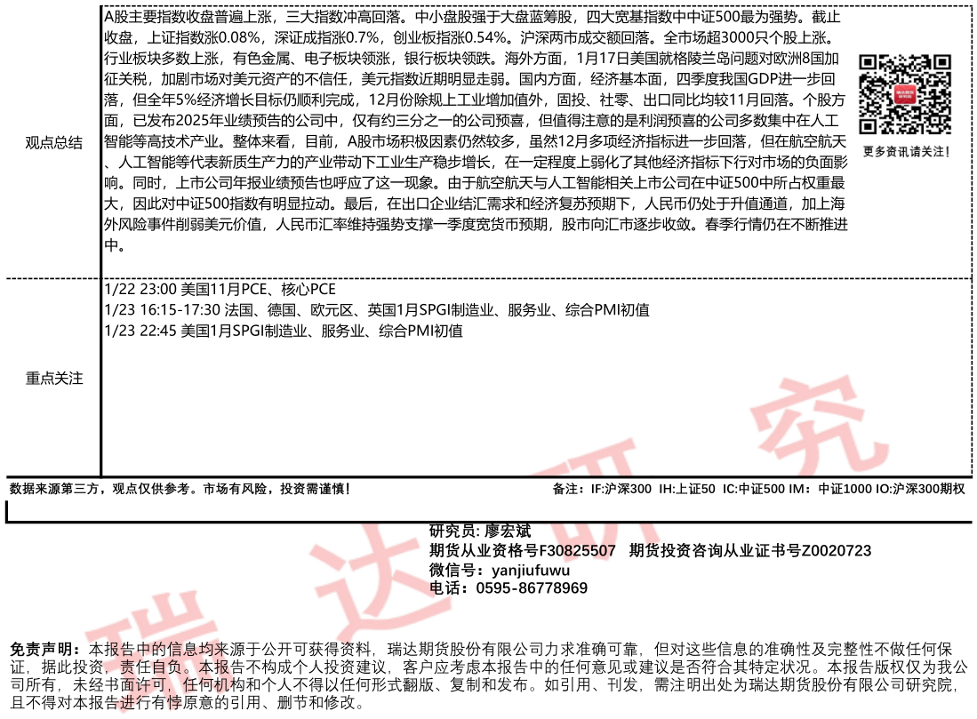 2026-01-22瑞达期货国债期货市场每日全景分析报告20260122