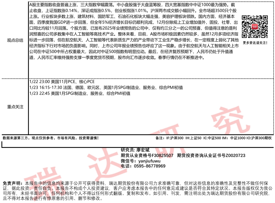 2026-01-22瑞达期货国债期货市场每日全景分析报告20260122