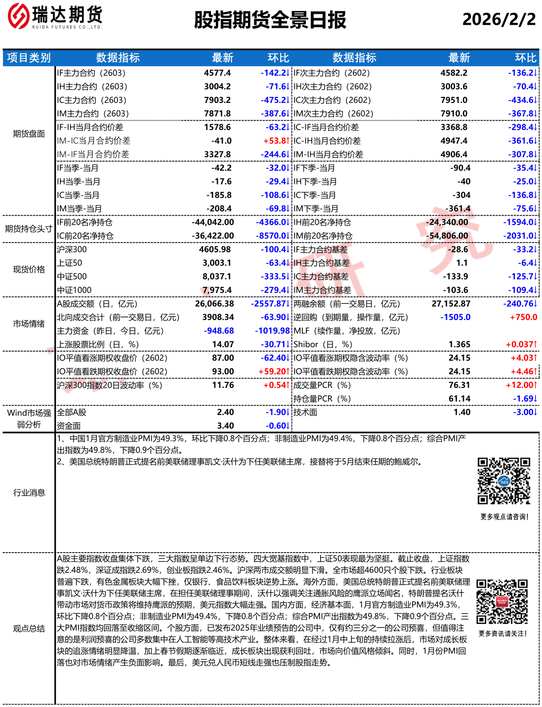 2026-02-02瑞达期货股指期货市场每日全景分析报告20260202