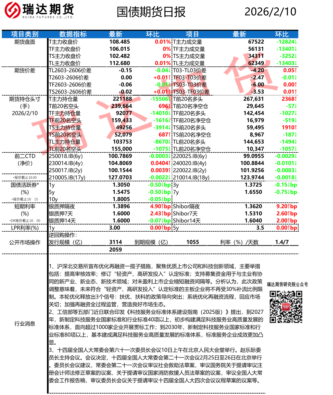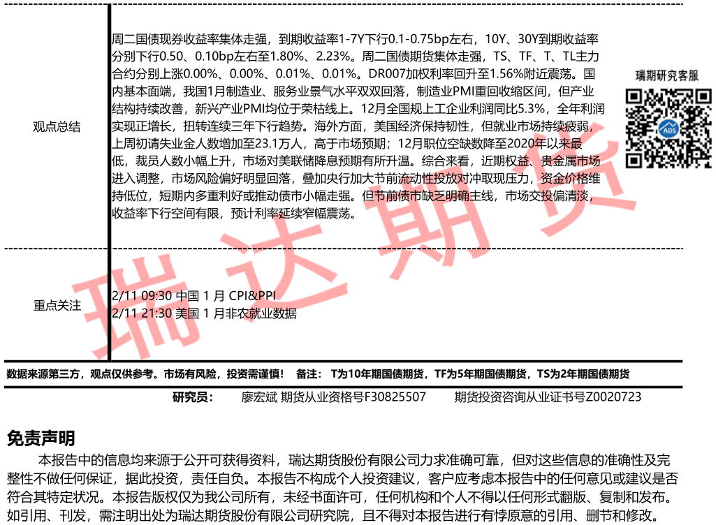 2026-02-10瑞达期货国债期货市场每日全景分析报告20260210