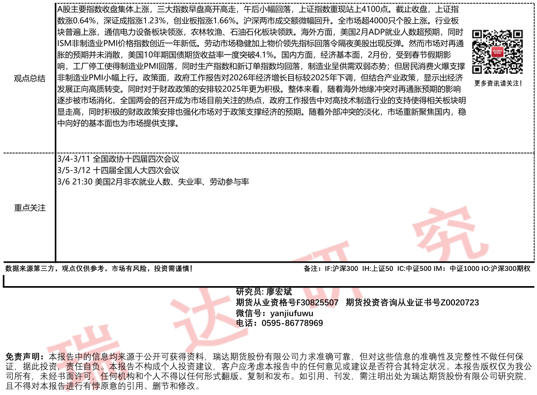2026-03-05瑞达期货股指期货市场每日全景分析报告20260305