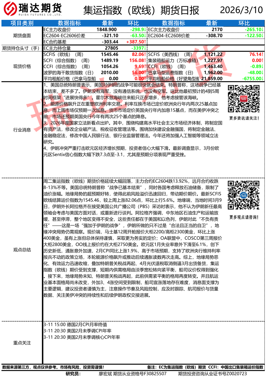 2026-03-12瑞达期货股指期货市场每日全景分析报告20260312