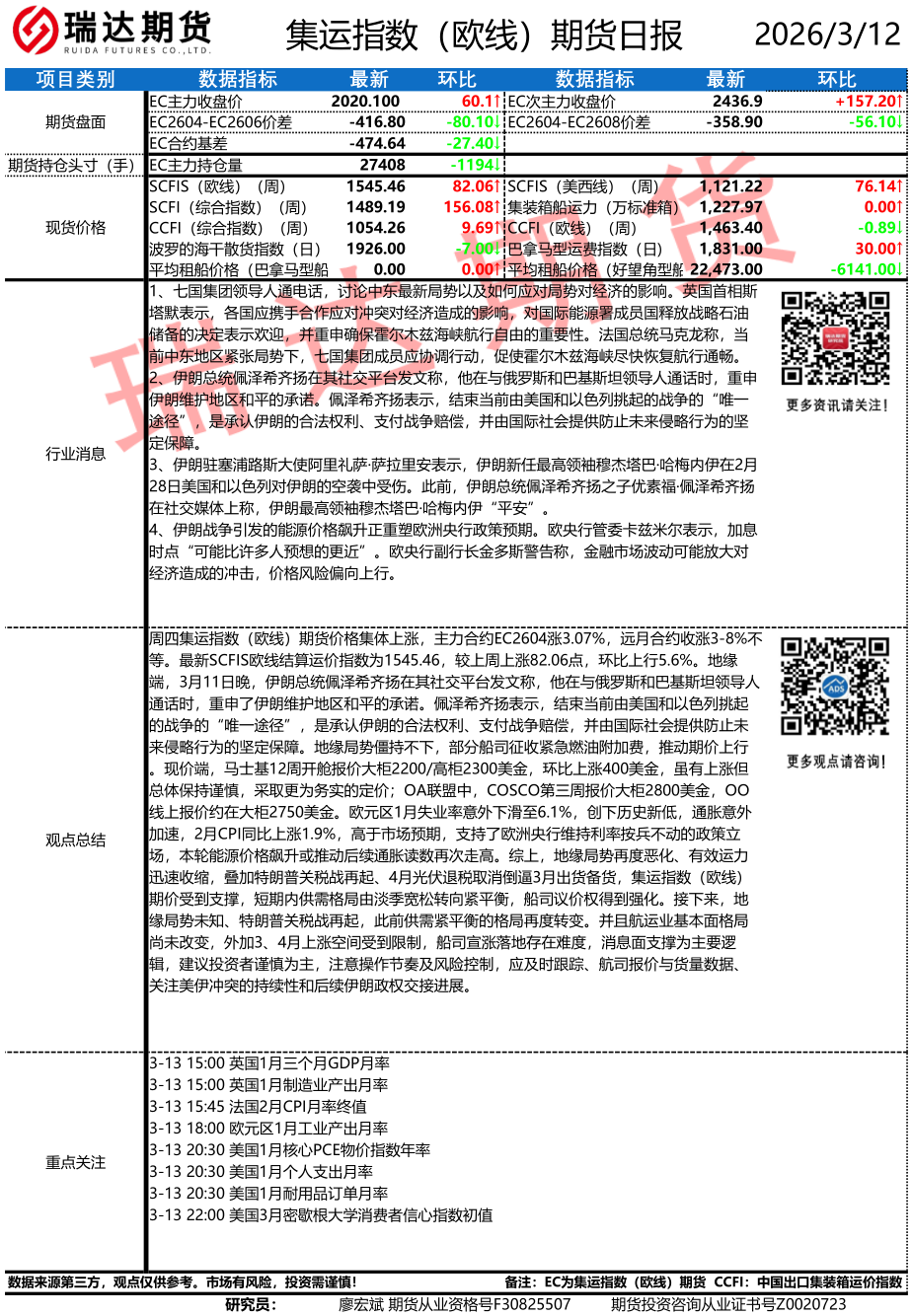 2026-03-12瑞达期货股指期货市场每日全景分析报告20260312